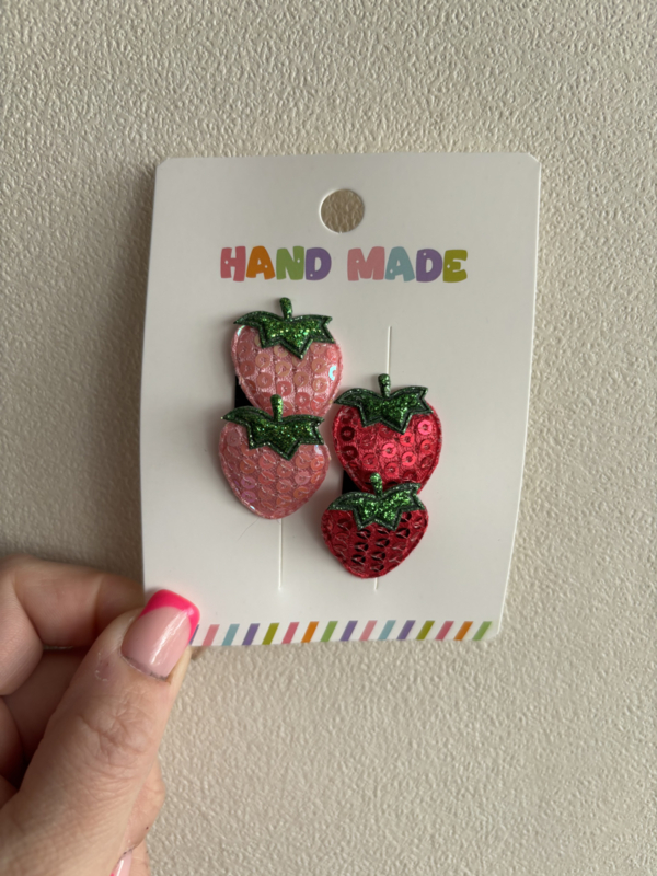Antislip speldjes AardbeiLieve antispeldjes voor de eerste fijne plukjes haar met aardbeitjes..