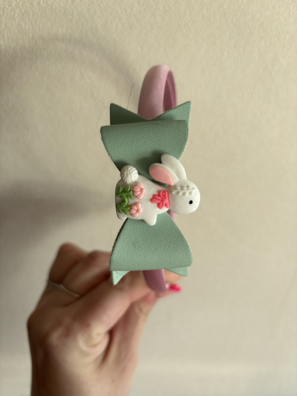 Diadeem met konijntjeLeuke diadeem met een strikje voorzien van een vrolijk konijntje..