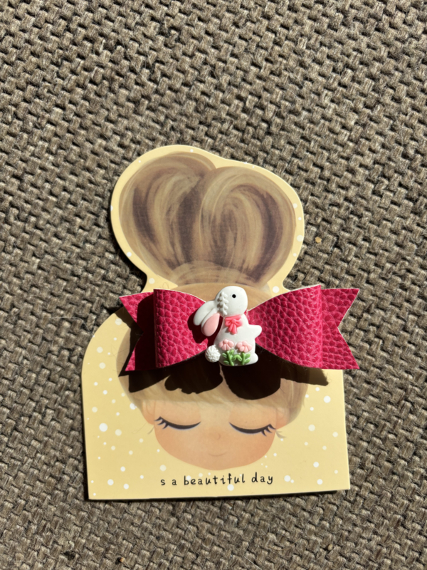 Roze haarstrik met wit konijnSchattig roze haarstrikje met een wit konijntje..