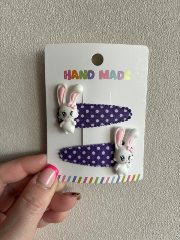 Haarspeldjes met konijnLeuke Haarspeldjes met 2 snoezige konijntjes.